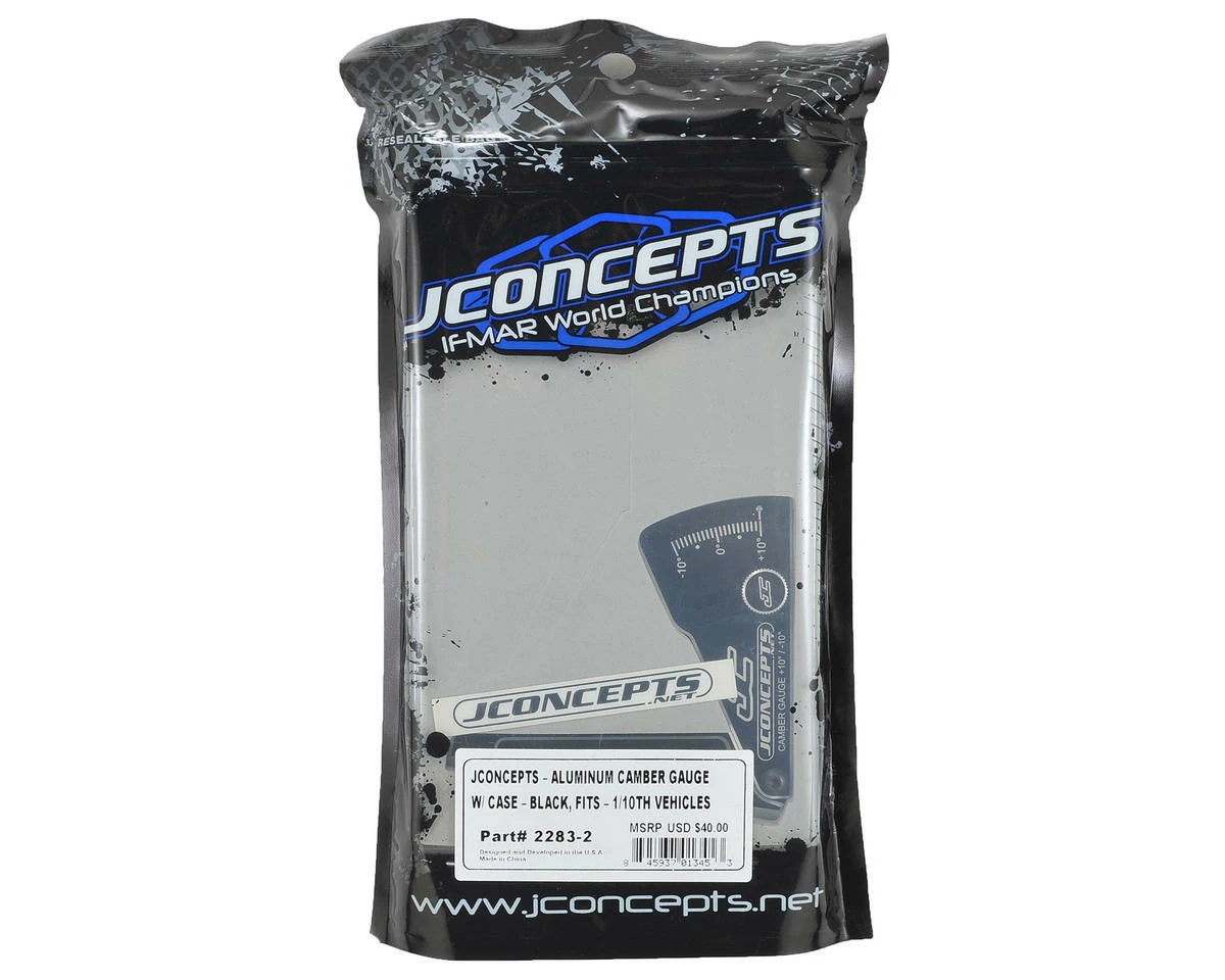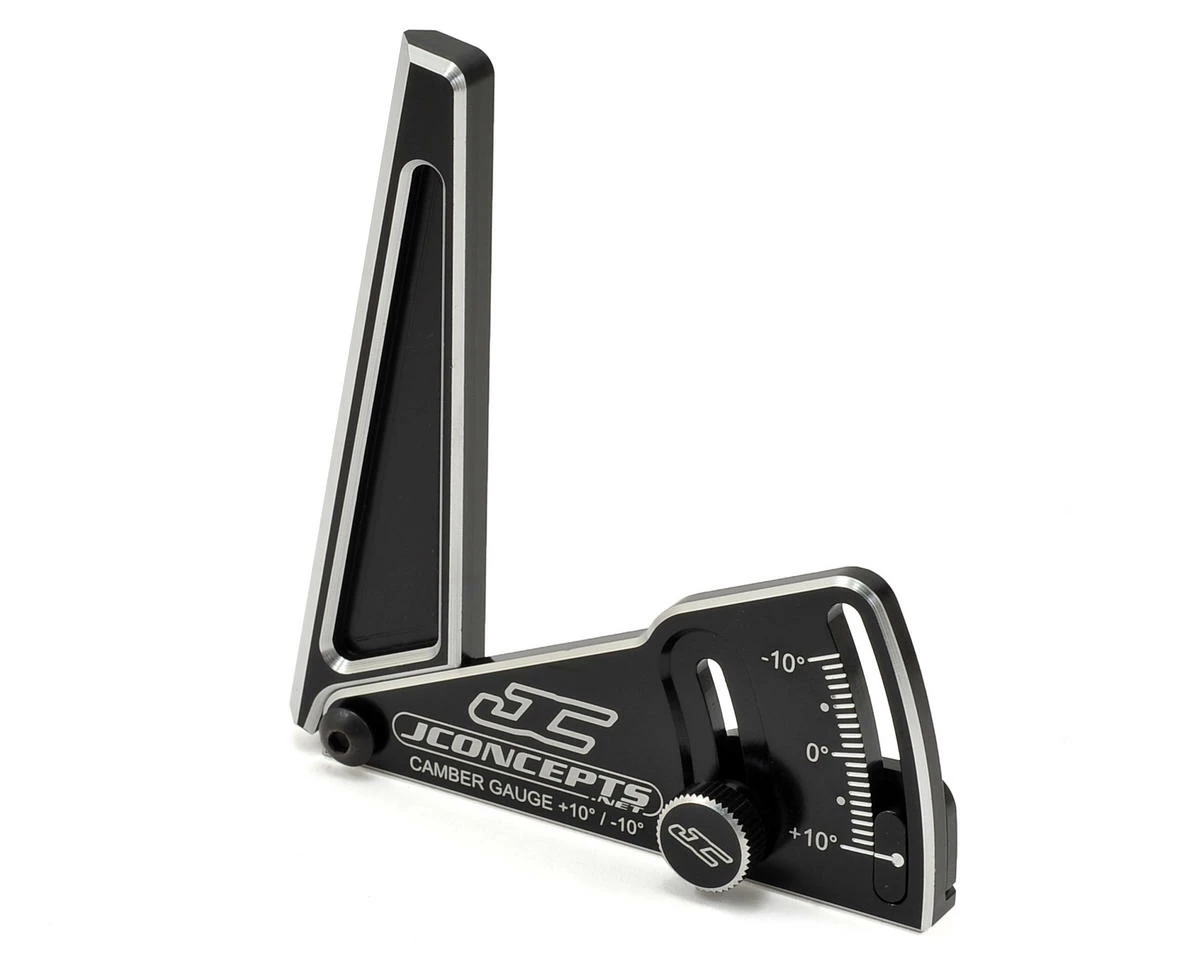 This is the JConcepts 85mm Aluminum Camber Gauge. A successful off-road racing program requires precise and accurate setup. Machined from billet aluminum material, the JConcepts ride height gauge is a high spec, detailed instrument that provides the precision your car deserves. The high polish, laser etched gauge features graduated measurements from -10 to +10 degrees for a complete range of camber adjustments. The camber gauge is pre-assembled with 4mm hardware for the pivot and thumbscrew as the setting knob. The structure features chamfered silver edging, highlighting the design. The alignment arm on the gauge is heavily chamfered which creates the perfect touch point against the tire and wheel. Each gauge comes in a latch box with foam insert which fits snugly around the instrument with heavy cushion. When racing gets serious, get precise with JConcepts.