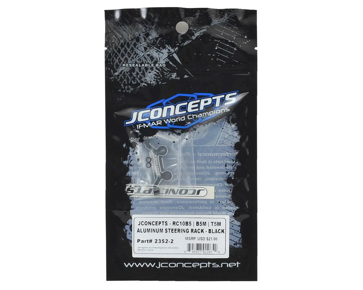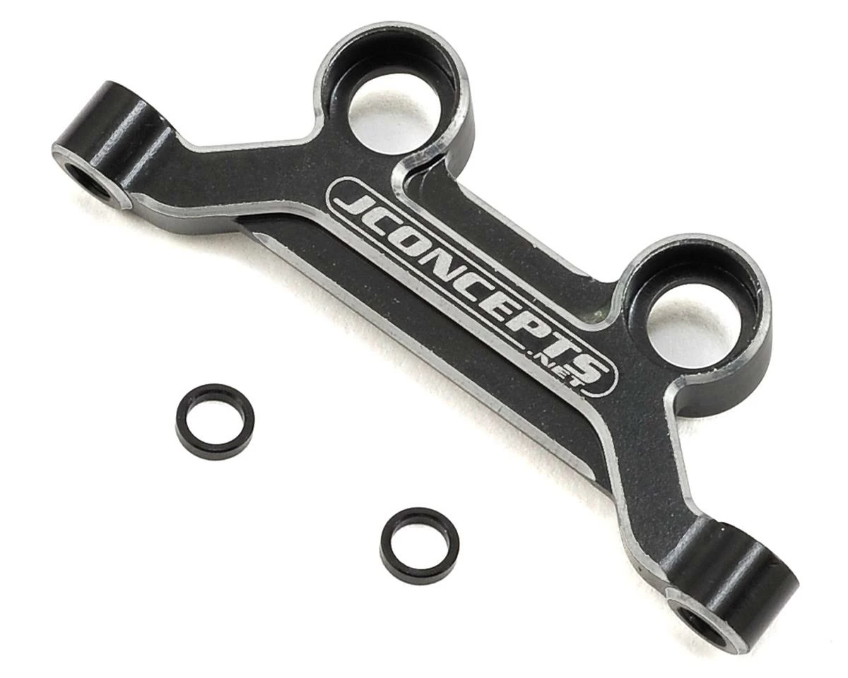 This is an optional JConcepts Aluminum Steering Rack. The JConcepts steering rack is a CNC-machined component that replaces the stock plastic piece, and provides a rigid and light-weight assembly for increased steering feel and response. The rack includes 2 thin crush tubes (black) that are installed between the bearings in the rack to prevent binding. During assembly it is important to align the crush tubes into place and while securing the parts together, always use a light amount of thread locking compound on any thread which assembles into aluminum.
