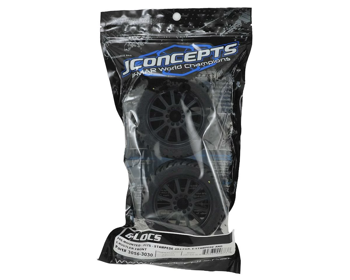 This is a pack of two JConcepts Pre-Mounted G-Locs 2.8″ Tires in yellow compound, pre-mounted on Rulux Electric Front Wheels. These pre-mounts can be used on the front and rear of the Traxxas Stampede 4×4, as well as the front of the electric 2WD Stampede, and 2WD Rustler trucks. Plus, they also fit on the Slash 4×4 when equipped with the JConcepts Scalpel body and conversion kit. The 2.8″ G-Locs provide elements that combine light-weight, performance and durability with the inclusion of Profiled closed cell inserts. The highly successful insert material made it’s fame on the 1/8th off-road racing circuit and now into the JConcepts 2.8″ line. Feel at ease while doing high-speed runs with the durability and performance of the closed cell material which provides durability and feel when others run short.