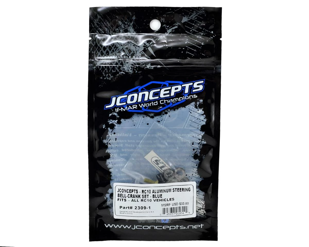 This is an optional JConcepts RC10 Classic Aluminum Steering Bell Crank Set. JConcepts developed an all aluminum bell crank that eliminates the servo saver with a one piece driving bell-crank design. This increases steering response and feel. The idler bell-crank sports a beefy and similar design giving the vehicle a symmetrical feel. The parts feature silver chamfered edges and a laser-etched JC logo for brand authenticity. The bell-cranks are bearing supported with heavy-duty flanged bearings and include threaded aluminum steering posts with an etched JC logo for an ultra snug fit and finish. Hardware includes genuine Team Associated 8-32 x ½” aluminum flat head screws and custom aluminum post shims which locates on the bottom of the assembly. This all in one, drop in upgrade is easily one of the best upgrades you can add to your RC10.