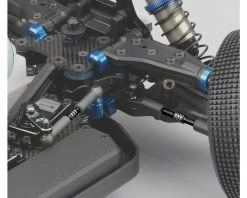 The JConcepts RC8B3 Fin Titanium Turnbuckle Set features a shaft design that is centered on a beefy 5mm square titanium shaft which gradually tapers down into a thread base design which accepts the rod ends included with the kit. The focus of the styling surrounds the lengthened adjustment area and the “finned” cuts that rotate about the center.