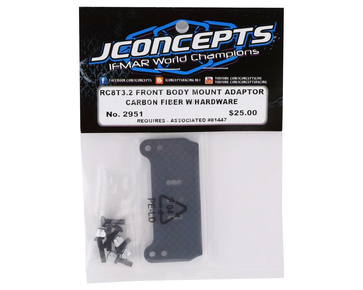 The JConcepts RC8T3.2 F2 Carbon Fiber Truggy Body Mount Adaptor simplifies the process of adding the JConcepts F2 body to the Associated T3.2 platform. To mount the F2 body, a carbon fiber adaptor is needed along with the Team Associated ASC81447 body mounts to place the front of the body in correct position. This model specific adaptor bolts directly to the stock tower and once the body mount is added (not included), provides a custom fit and beautiful finish.