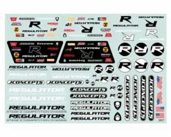 Machined and adjustable Delrin body posts are included along with pin screws to attach to the aluminum shock and body mount part providing a height adjustment. The battery mounting system contains a fiberglass battery strap for a shorty style battery with bump stops on each end to hold the battery positioning on the radio tray. Finishing off the panels of the chassis, polycarbonate pieces are included and can be trimmed to slide into the pockets of the chassis to give scale looks. Trim and position the included decal sheet on the panel to detail out the sides of the Regulator to fit whichever theme suits the build.