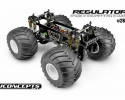 The JConcepts Tamiya Clod Buster Regulator Chassis Conversion Kit is an optional upgrade developed to improve weight balance, lower the center of mass with optimized engineering materials and pinpoint adjustability to fully compliment one of the longest running vehicles in the RC industry. The Regulator focuses on allowing other existing RC components to work alongside of the design such as readily available body designs, shocks, wheels, tires and behind axle servo conversion kits.