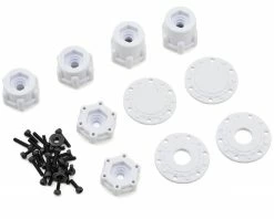 The Tribute wheel includes three off-set wheel adapters. 11mm width for a stock Clod Buster or retro type Monster Truck width, 18mm for increased stability on standard wheelbase trucks and 25mm for the ultimate in footing for long wheelbase race trucks. The adapters are installed with 6 x 2.5 x 12mm screws and centers precisely on the wheel for positive engagement. The wheels include open and closed planetary caps which attach with 6 x 2.5 x 8mm screws. The planetary caps support a scale look as well as a quick change racer function to suit individual needs.