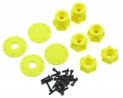 The Tribute wheel includes three off-set wheel adapters. 11mm width for a stock Clod Buster or retro type Monster Truck width, 18mm for increased stability on standard wheelbase trucks and 25mm for the ultimate in footing for long wheelbase race trucks. The adapters are installed with 6 x 2.5 x 12mm screws and centers precisely on the wheel for positive engagement. The wheels include open and closed planetary caps which attach with 6 x 2.5 x 8mm screws. The planetary caps support a scale look as well as a quick change racer function to suit individual needs.